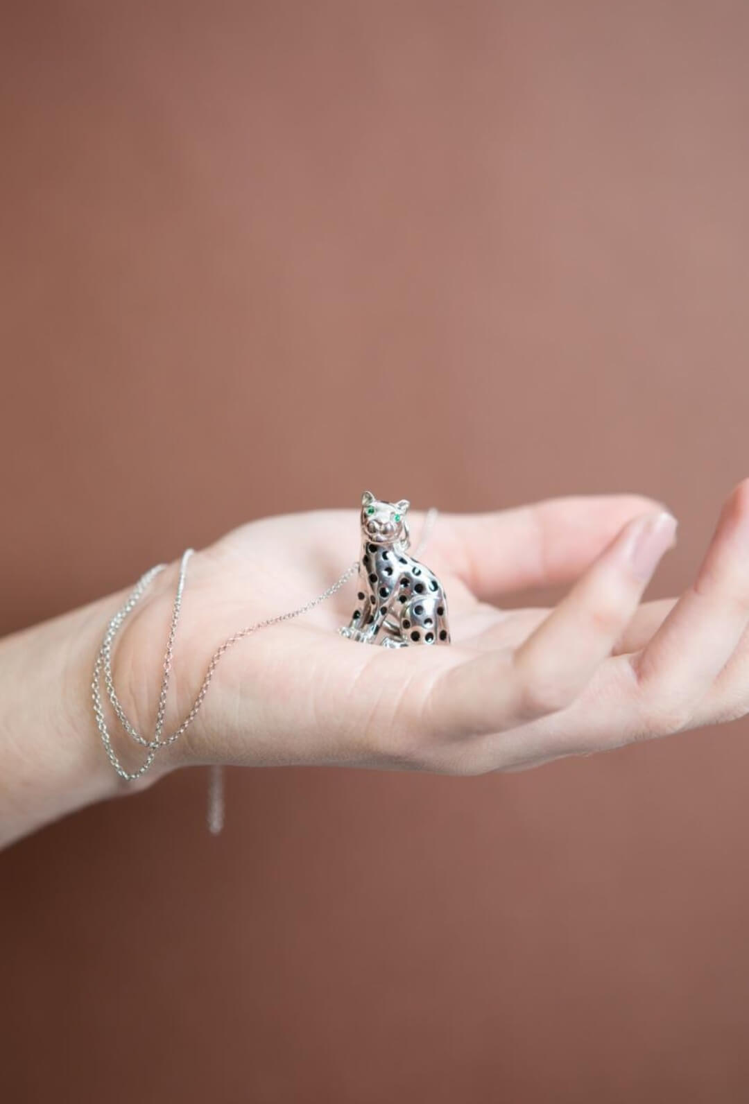 Pingente em prata com esmalte negro e 2 Esmeraldas, totalizando 0,03cts.