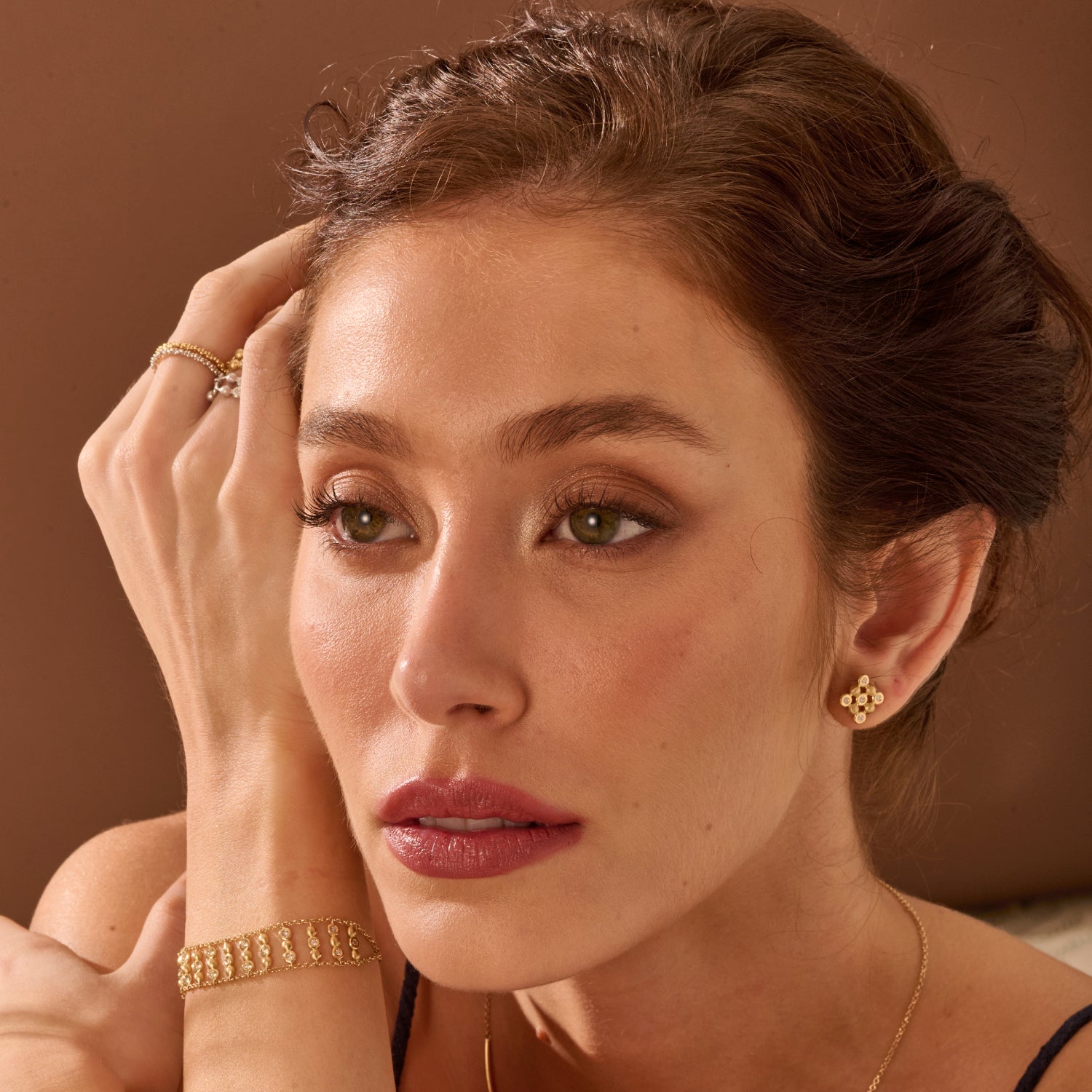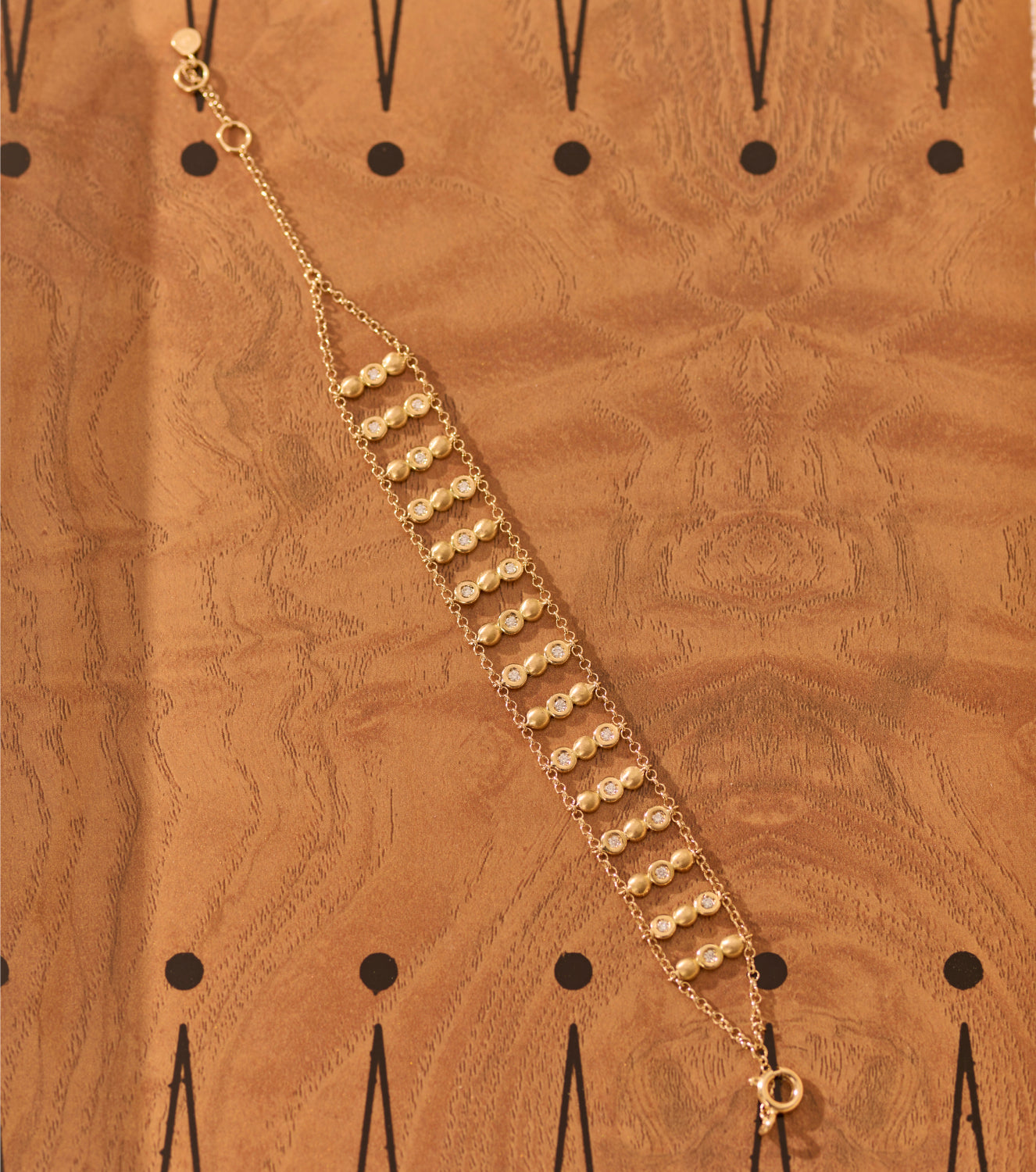 Confeccionada em ouro amarelo 18k, contendo 22 brilhantes, totalizando 0.22ct.