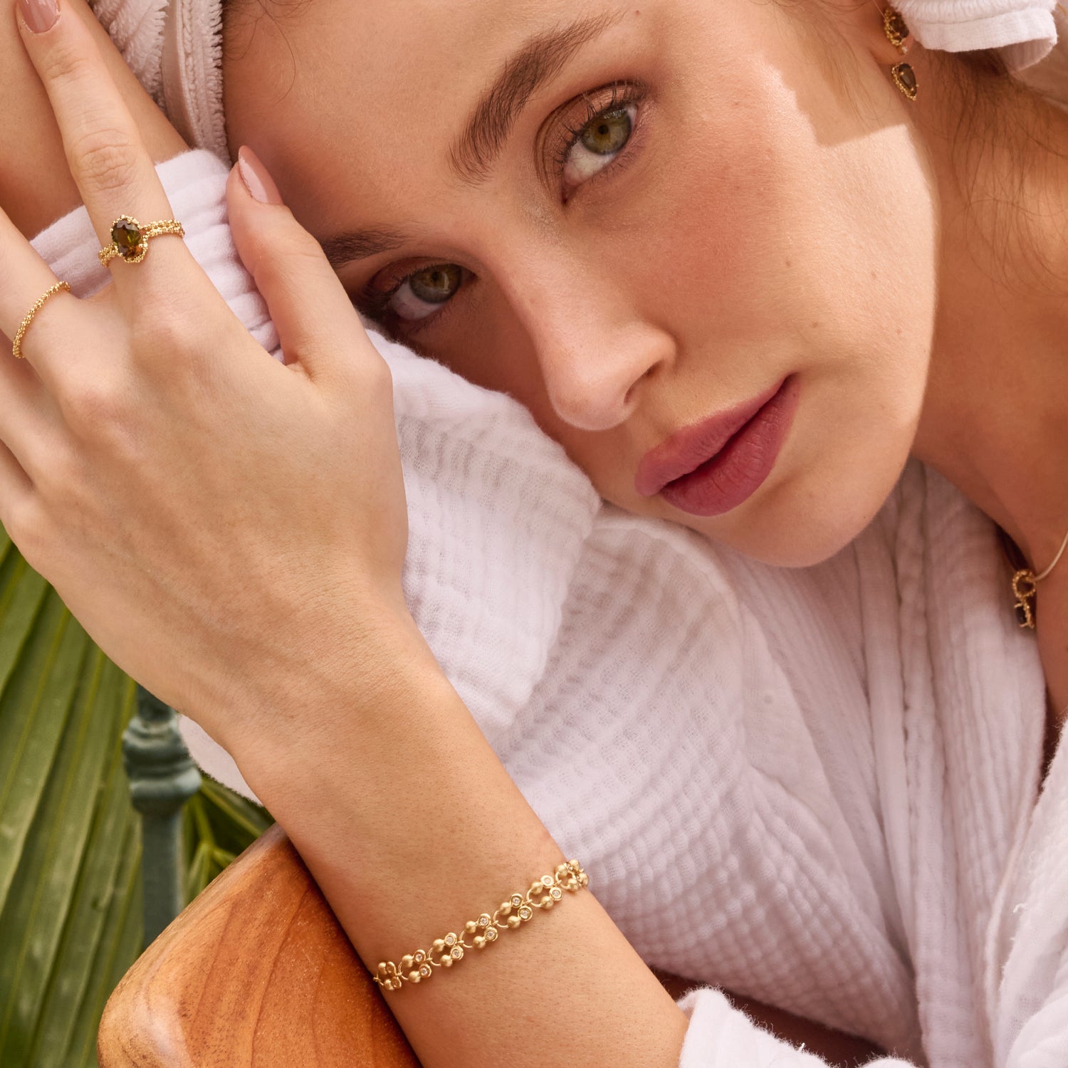 Confeccionada em ouro amarelo 18k, contendo brilhantes que totalizam 0.26ct.